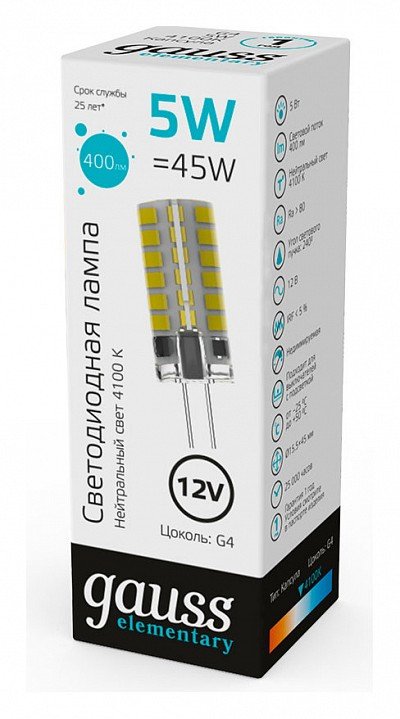 Главная Лампочки Лампа cветодиодная Gauss G4 3W 4100K прозрачная 18723
