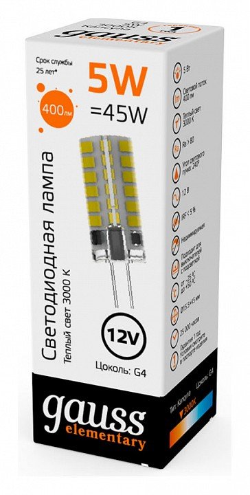 Главная Лампочки Лампа cветодиодная Gauss G4 5W 3000K прозрачная 18715