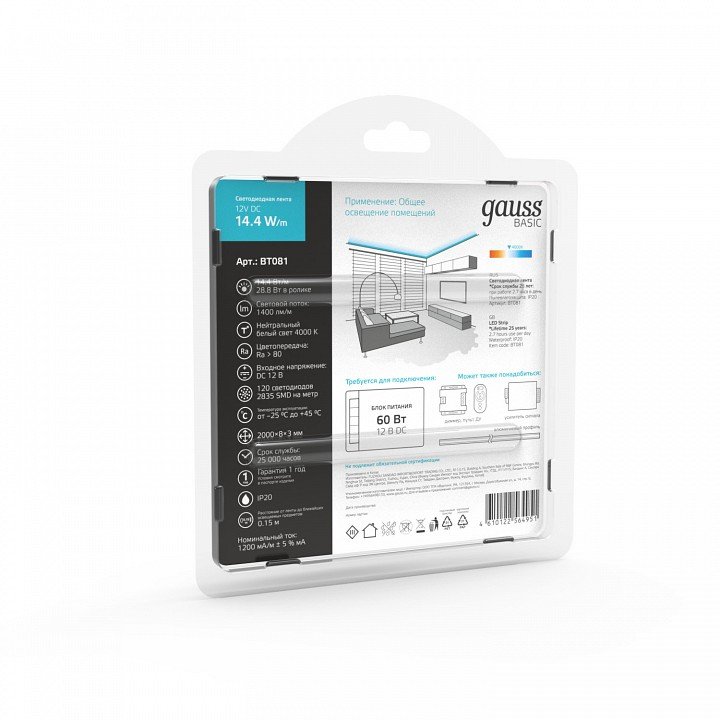 Главная Лампочки Лента светодиодная Gauss Basic BT081