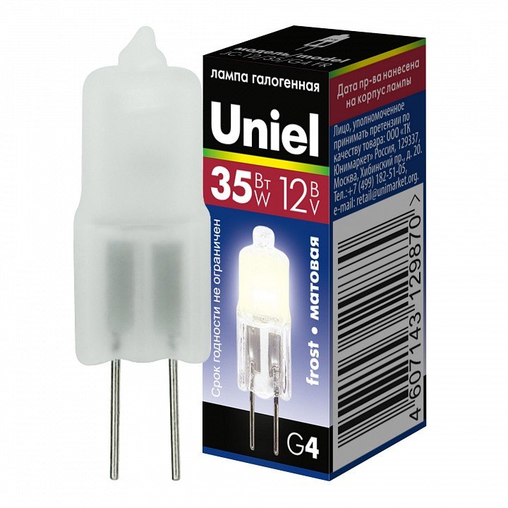 Лампа галогеновая Uniel G4 35Вт 3000K 00824