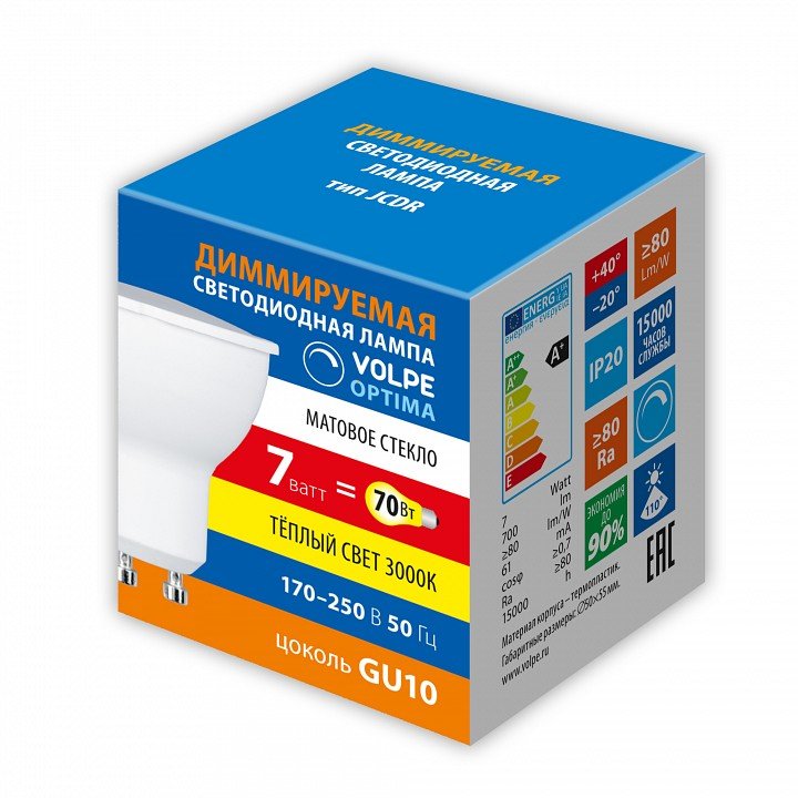 Лампа светодиодная Volpe OPTIMA DIM GU10 7Вт 3000K UL-00009233