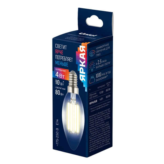 Станьте первым, кто оставит отзыв о товаре Лампа светодиодная Uniel E14 4W 3000K прозрачная LED-C35-4W/3000K/E14/CL GLY01TR UL-00011936.