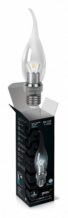 Станьте первым, кто оставит отзыв о товаре Лампа светодиодная Gauss Candle Tailed E27 3Вт 4100K HA104202203.