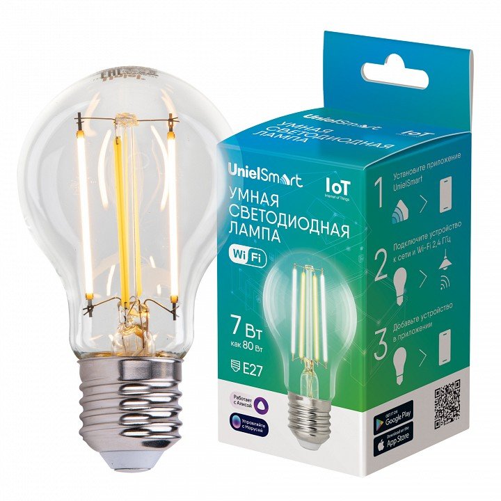 Главная Лампочки Лампа светодиодная с управлением через Wi-Fi Uniel E27 7Вт 2700 - 6500K UL-00011656