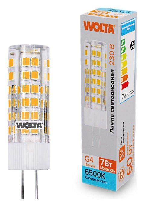 Главная Лампочки Лампа светодиодная Wolta G4 7Вт 6500K WSTD-JC-220V7W6KG4-C