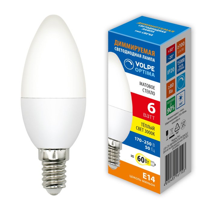 Артикул: LED-C37-6W/3000K/E14/FR/DIM/SLS