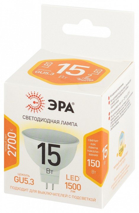 Лампа светодиодная Эра Стандарт GU5.3 15Вт 2700K LED MR16-15W-827-GU5.3