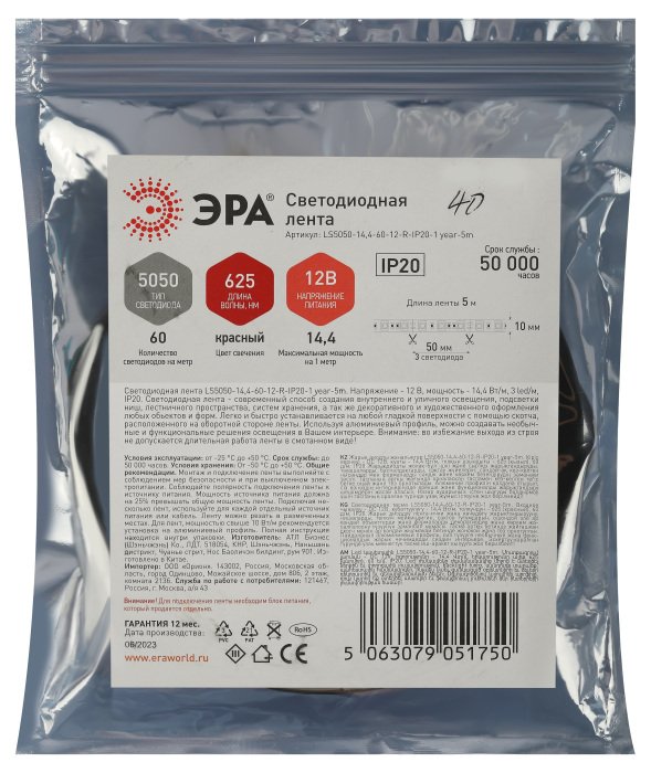 Артикул: LS5050-14,4-60-12-R-IP20-1 year-5m