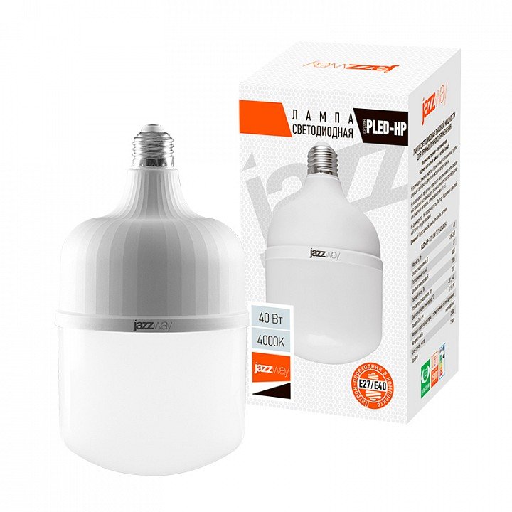 Главная Лампочки Лампа накаливания Jazzway E14, E27 40Вт 4000K PLED-HP-T120 40W 4000K E40
