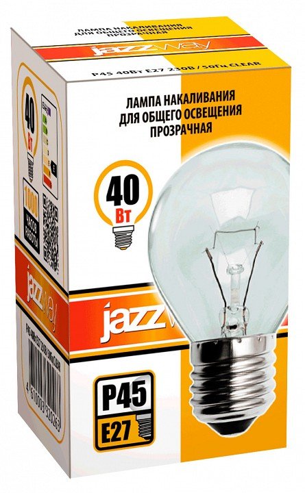 Лампа накаливания Jazzway E27 40Вт 2700K P45 240V 40W E27 clear
