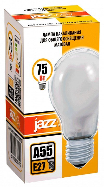 Лампа накаливания Jazzway E27 75Вт 2700K A55 240V 75W E27 frosted