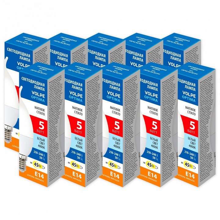 Главная Лампочки Набор из 10 ламп светодиодных Volpe OPTIMA E14 5Вт 4000K UL-00013858