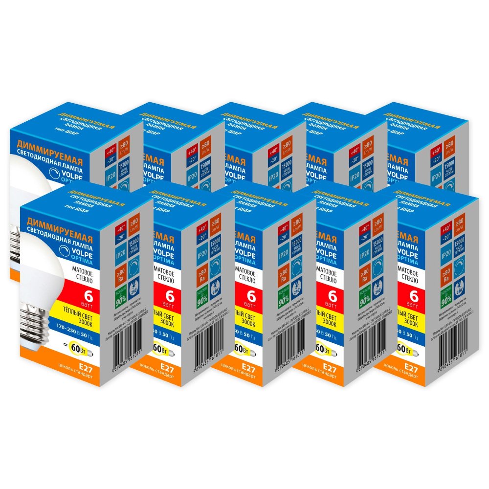 Артикул: LED-G45-6W/3000K/E27/FR/DIM/SLS Набор из 10штук