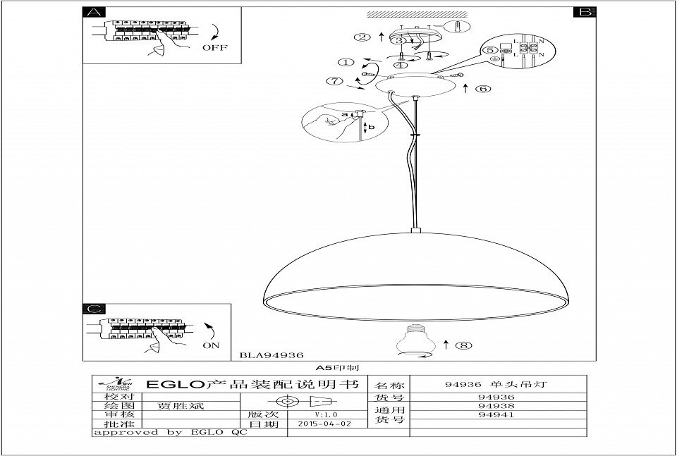 Станьте первым, кто оставит отзыв о товаре Подвесной светильник Eglo Gaetano 1 94936.