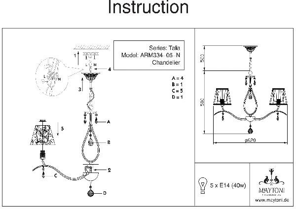 Станьте первым, кто оставит отзыв о товаре Подвесная люстра Maytoni Talia MOD334-PL-05-N.