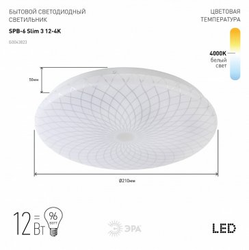 Главная Люстры и потолочные светильники Потолочный светодиодный светильник ЭРА SPB-6-slim 1-18-4K