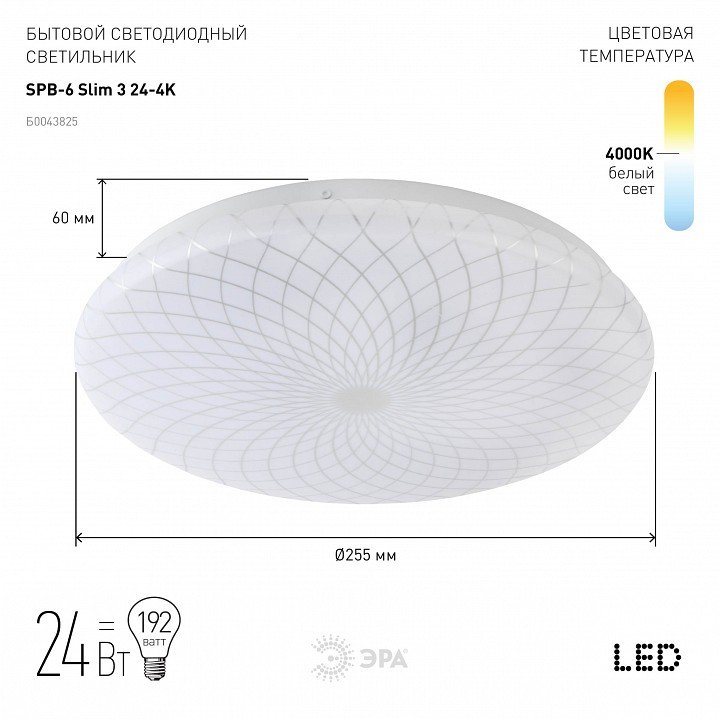 Главная Люстры и потолочные светильники Потолочный светодиодный светильник ЭРА SPB-6-slim 3-24-4K