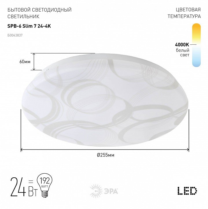 Главная Люстры и потолочные светильники Потолочный светодиодный светильник ЭРА SPB-6-slim 7-24-4K