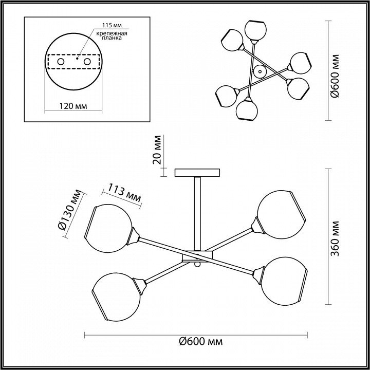 Тип крепления люстры: на штанге