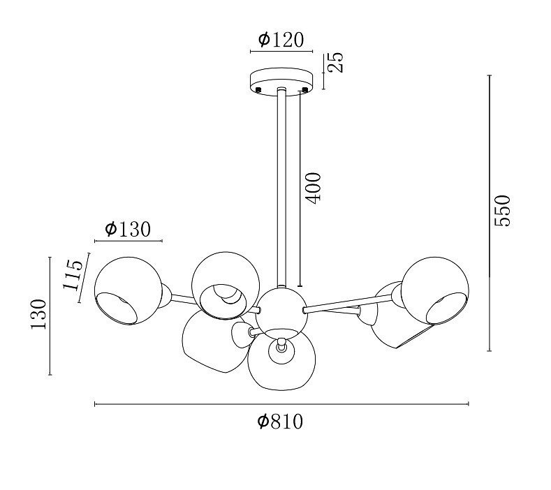 Основная форма светильника (Для подвесных люстр, потолочных люстр и подвесных светильников): Несколько плафонов