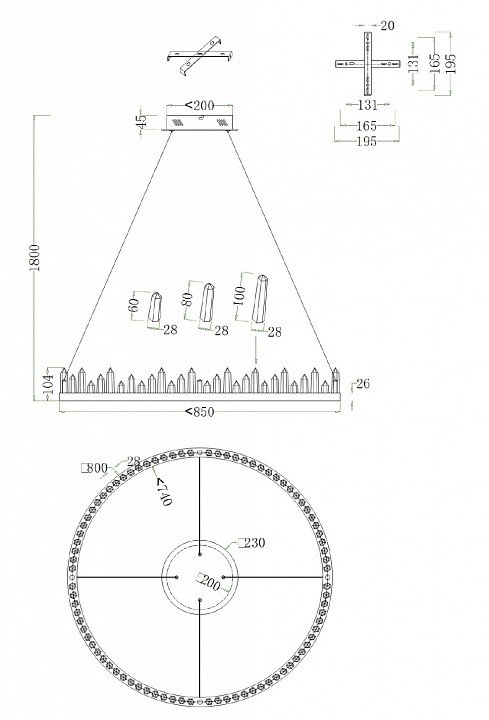 Точная форма - Без плафонов (Для подвесных люстр, потолочных люстр и подвесных светильников): Кольца на подвесе