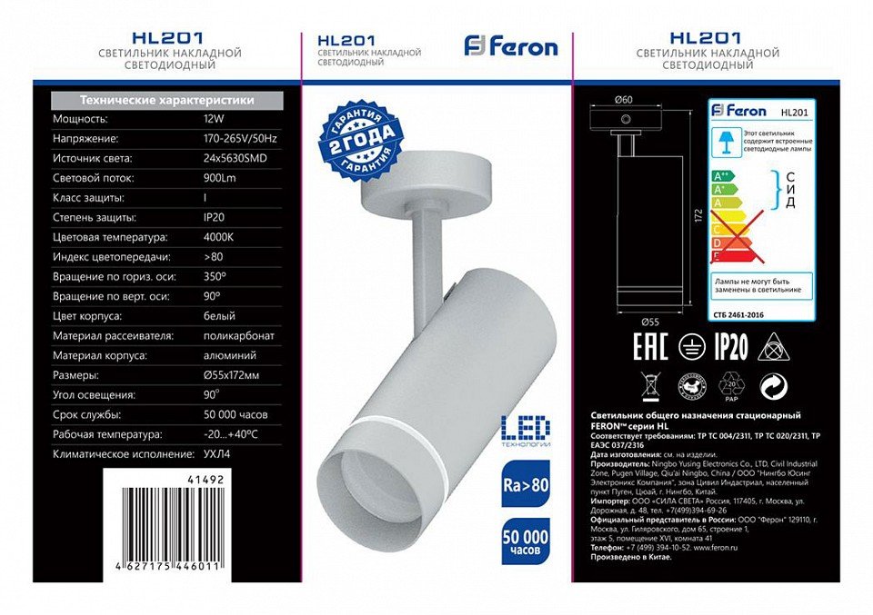 Станьте первым, кто оставит отзыв о товаре Светодиодный спот Feron HL201 41492.