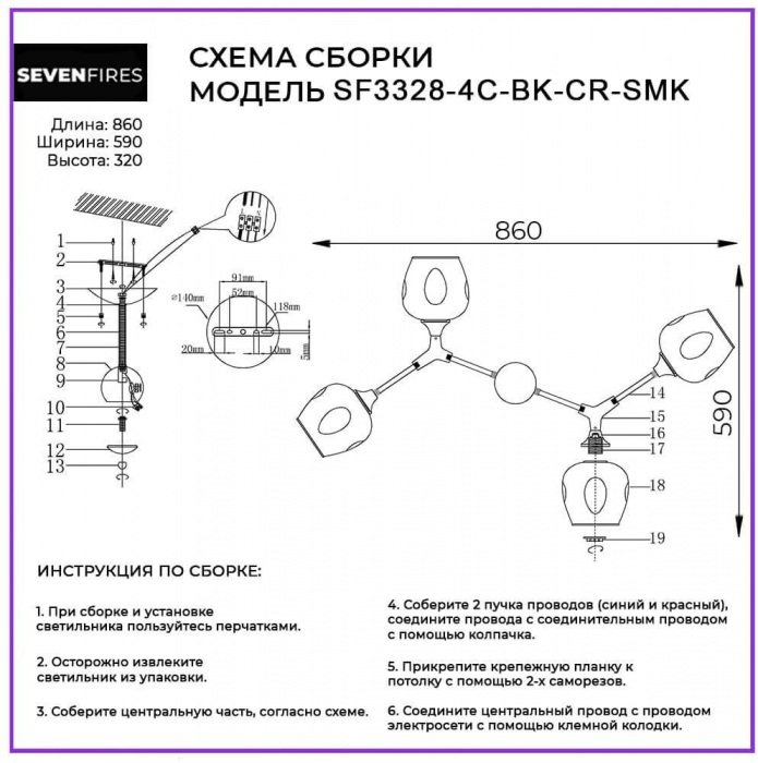 Станьте первым, кто оставит отзыв о товаре Потолочная люстра Seven Fires Mouzes SF3328/4C-BK-CR-SMK.