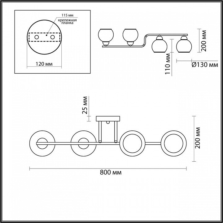 Тип поверхности плафонов: прозрачный
