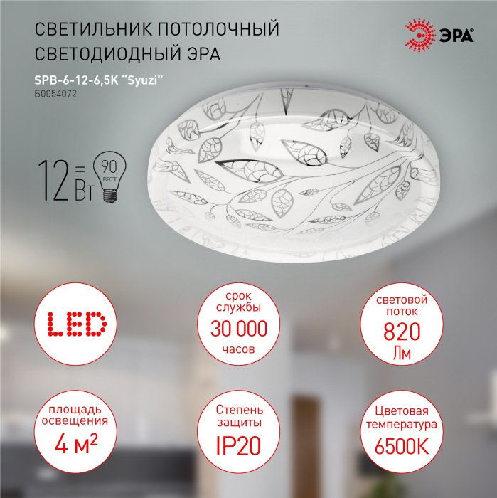 Главная Люстры и потолочные светильники Потолочный светодиодный светильник ЭРА SPB-6-12-6,5K Syuzi круглый Б0054072