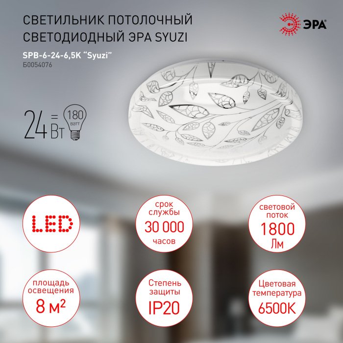 Станьте первым, кто оставит отзыв о товаре Потолочный светодиодный светильник ЭРА SPB-6-24-6,5K Syuzi круглый Б0054076.