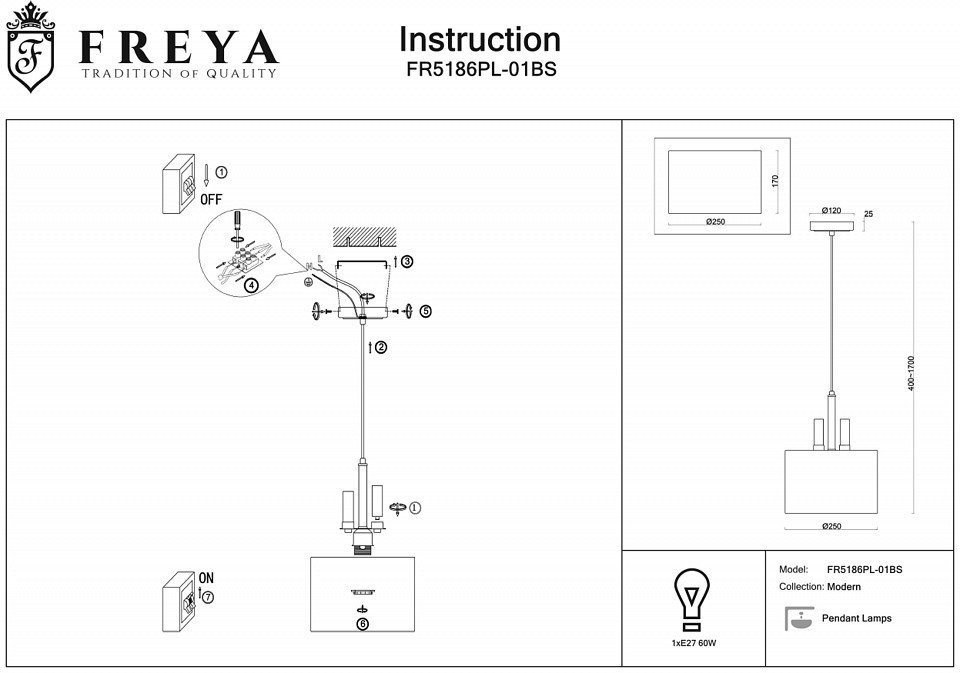 Станьте первым, кто оставит отзыв о товаре Подвесной светильник Freya Lino FR5186PL-01BS.
