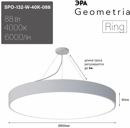 Станьте первым, кто оставит отзыв о товаре Подвесной светодиодный светильник Geometria ЭРА Ring SPO-132-W-40K-088 88Вт 4000К белый Б0050560.
