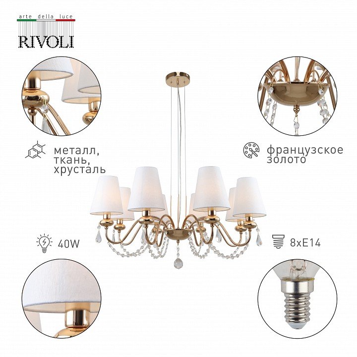 Станьте первым, кто оставит отзыв о товаре Подвесная люстра Rivoli Becky 2066-308 Б0055464.