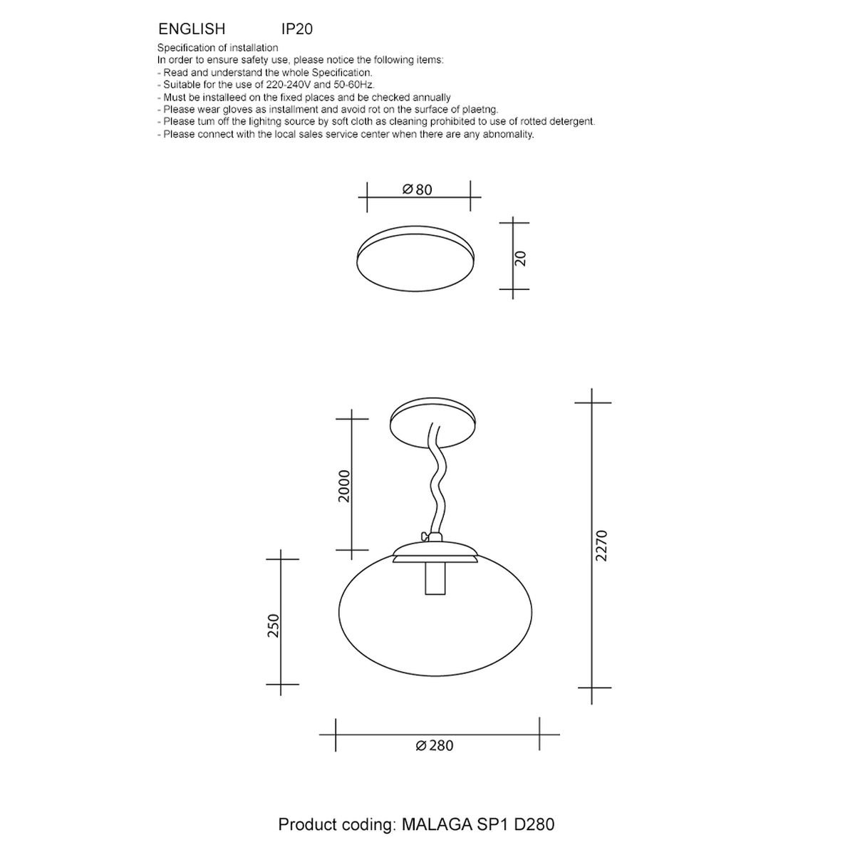 Главная Люстры и потолочные светильники Подвесной светильник Crystal Lux Malaga SP1 D280 Cooper