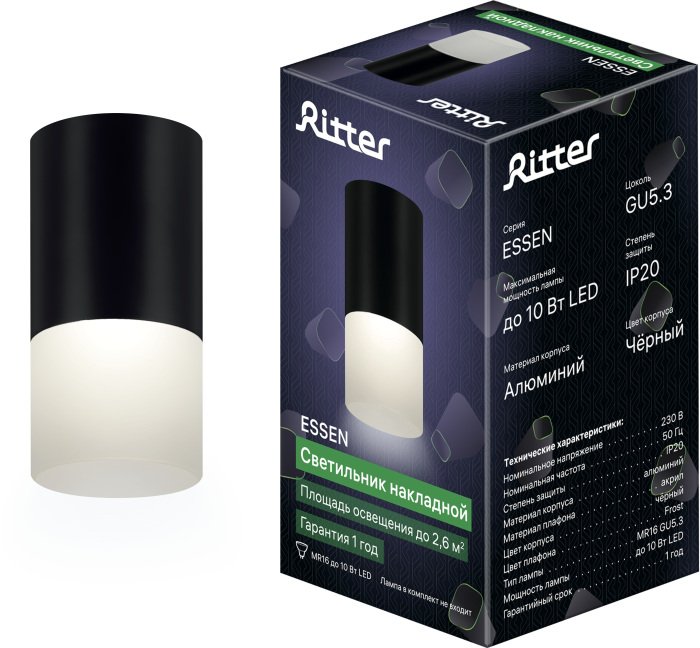 Накладной потолочный светильник Ritter Essen RCS-65MR16-BL 52060 3