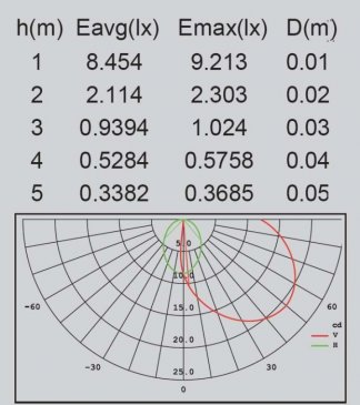 Площадь освещения, м2: ? 2