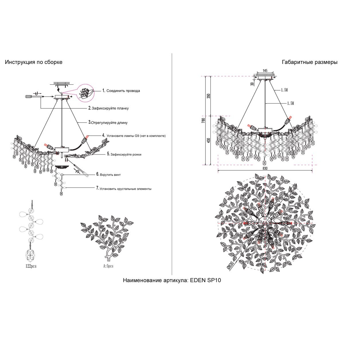 Материал плафонов: ? Хрусталь, Металл