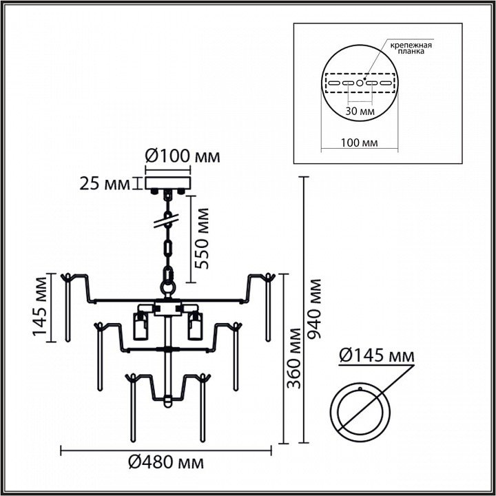 Тип светильника: подвесная люстра
