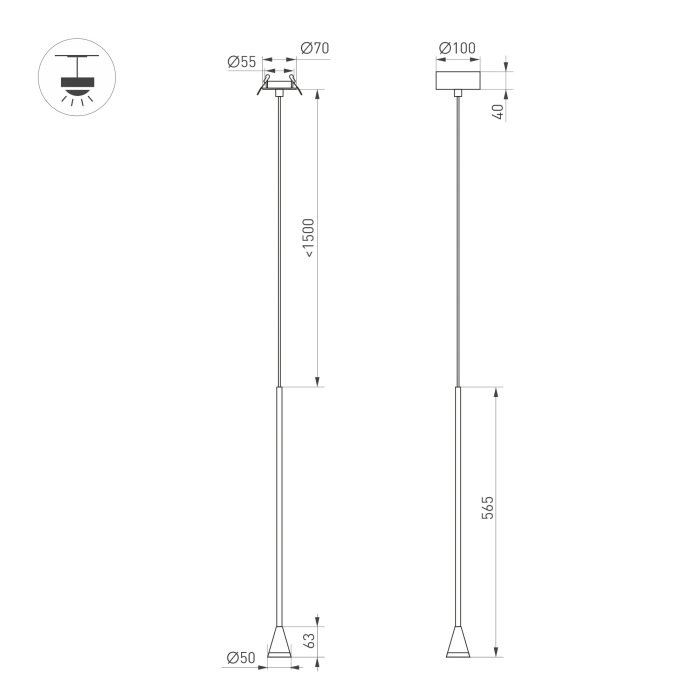 Длина подвеса, мм: 1500