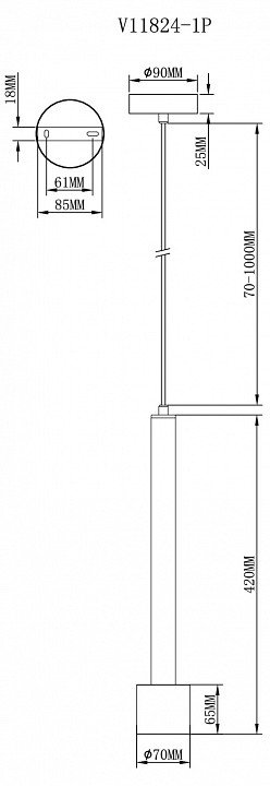 Длина подвеса, мм: 1000