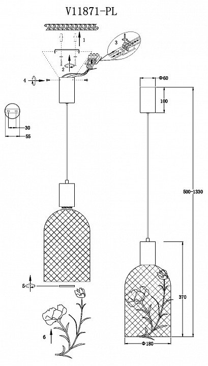 Станьте первым, кто оставит отзыв о товаре Подвесной светильник Ophelia V11871-PL.