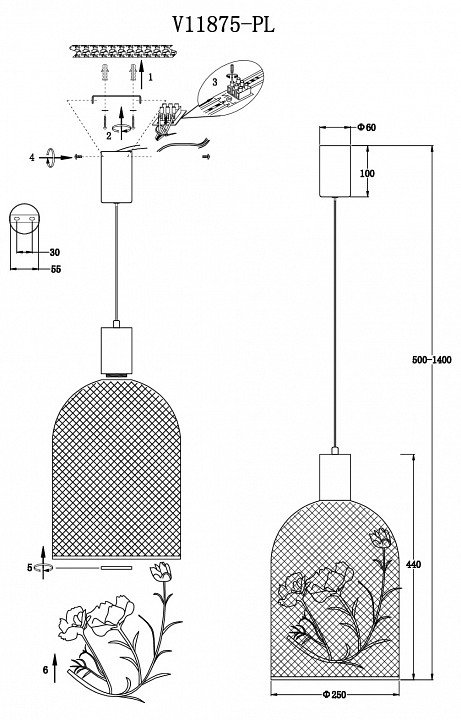 Станьте первым, кто оставит отзыв о товаре Подвесной светильник Ophelia V11875-PL.