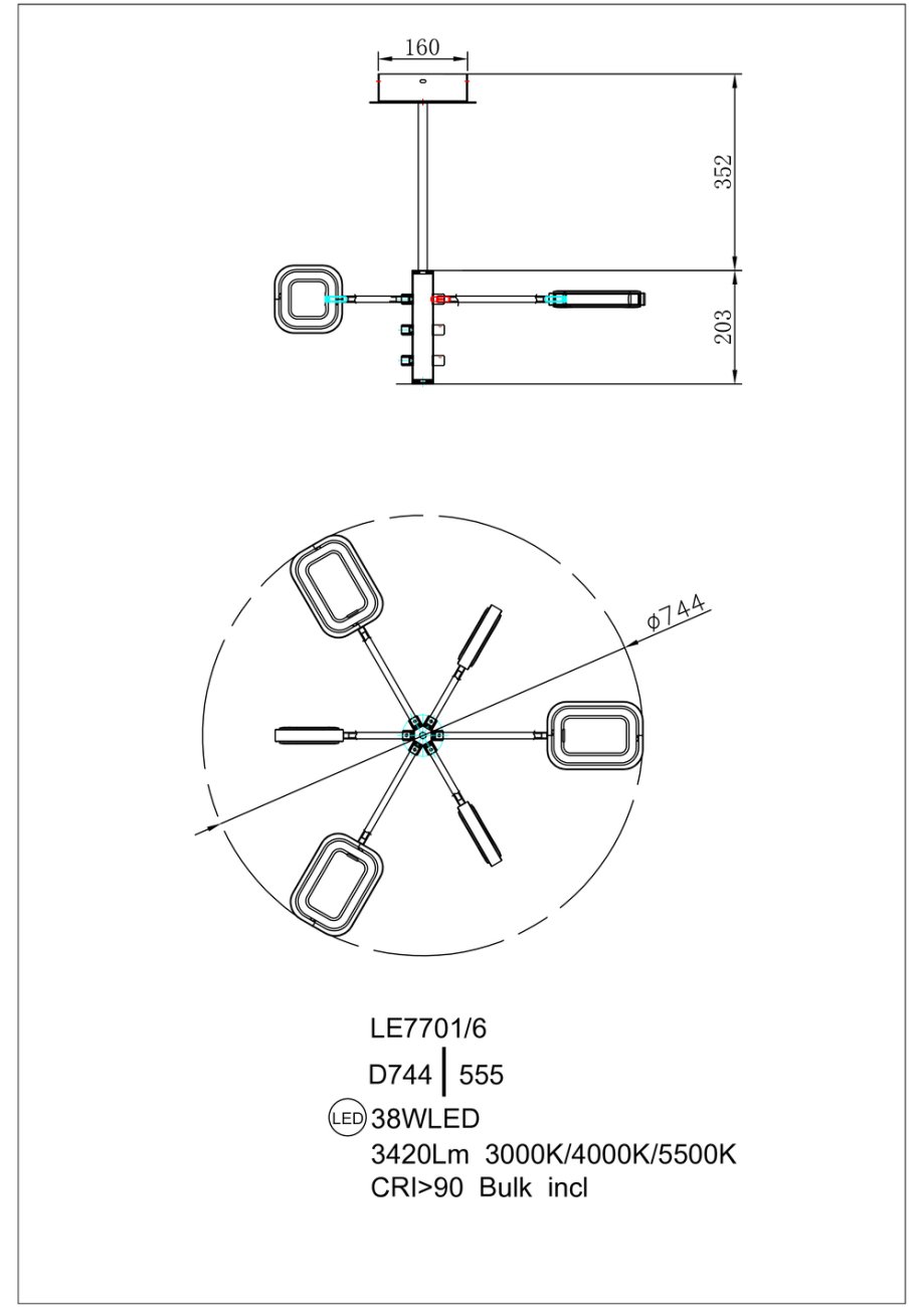 Подвесная люстра Theona LE7701/6G Gold