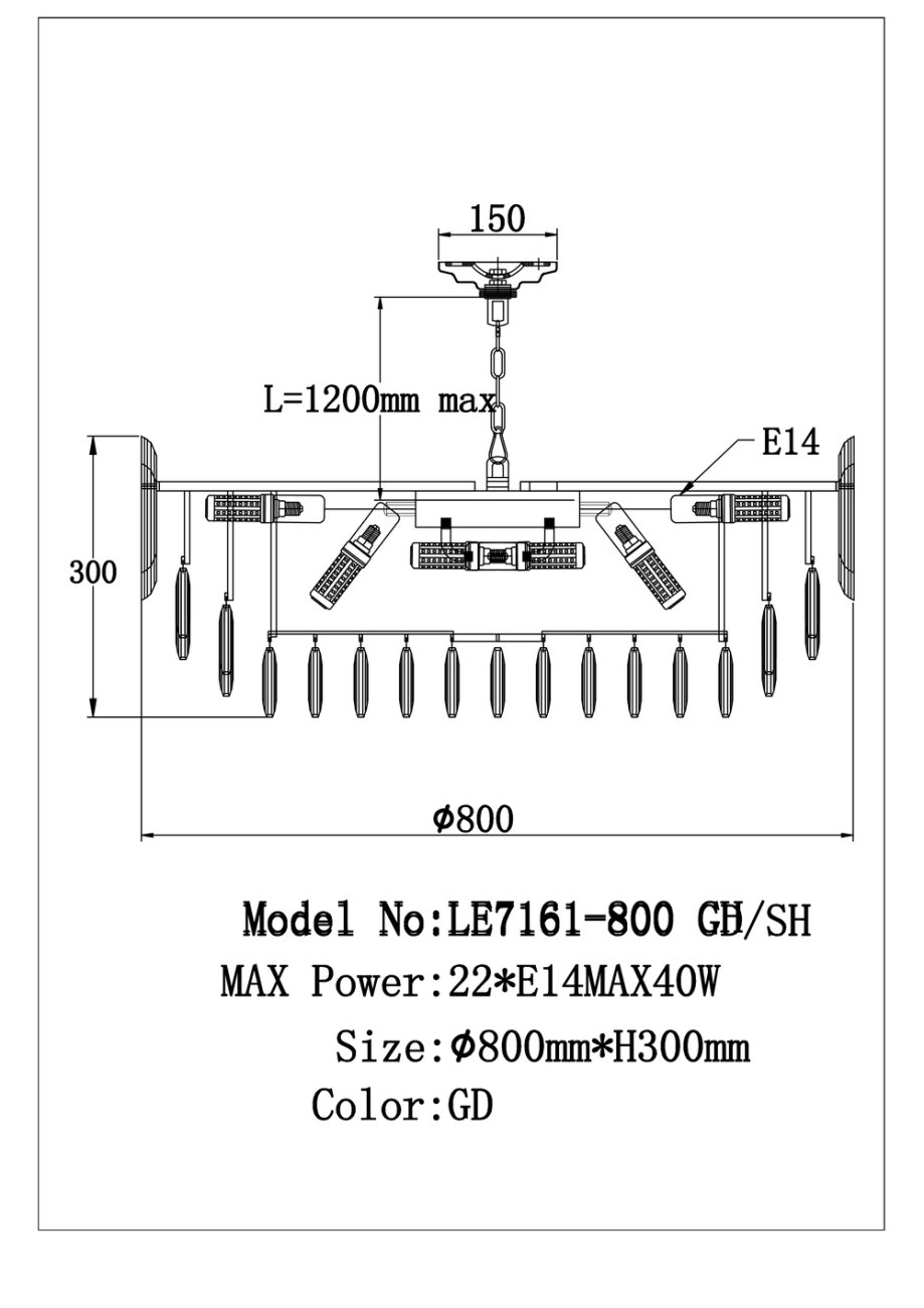 Станьте первым, кто оставит отзыв о товаре Подвесная люстра Jacqueline LE7161/800 GD/SH.