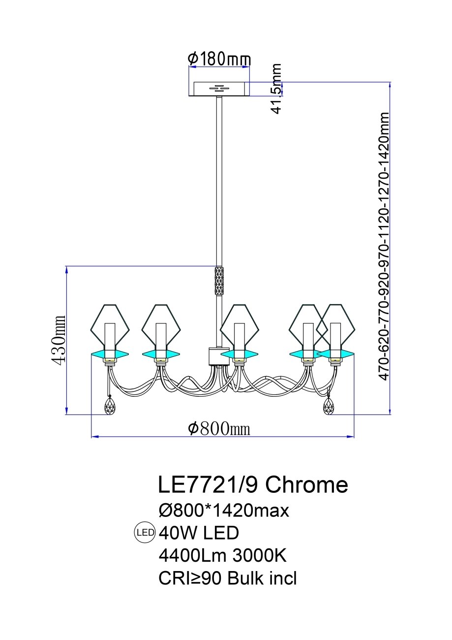 Главная Люстры и потолочные светильники Подвесная люстра Therese LE7721/9 Chrome