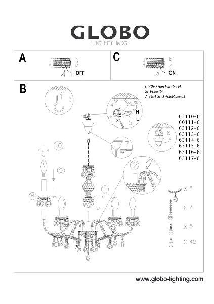 Главная Люстры и потолочные светильники Подвесная люстра Globo Cuimbra I 63110-6