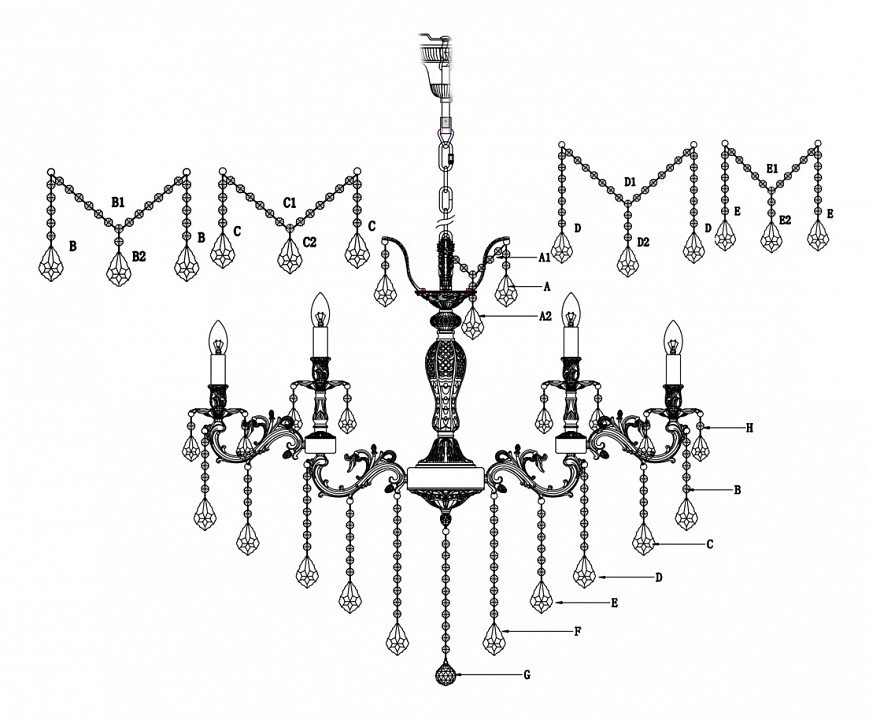Материал плафонов: ? Хрусталь, Без плафона