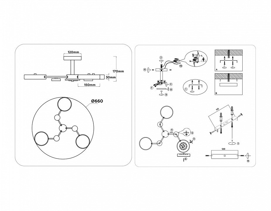 Основная форма светильника (Для подвесных люстр, потолочных люстр и подвесных светильников): Несколько плафонов