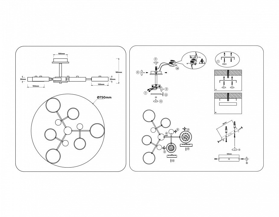Основная форма светильника (Для подвесных люстр, потолочных люстр и подвесных светильников): Несколько плафонов