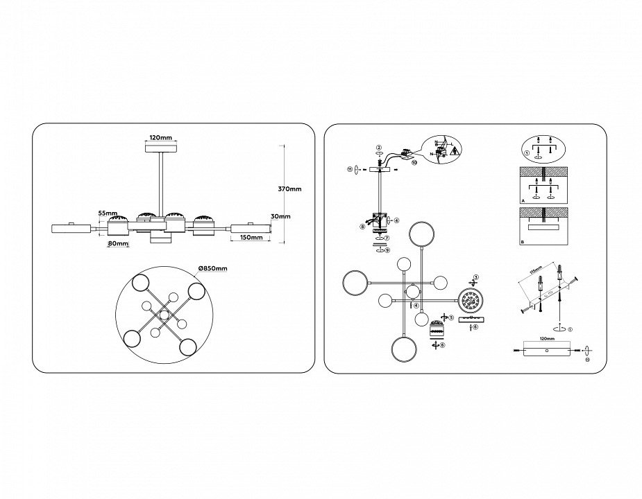 Основная форма светильника (Для подвесных люстр, потолочных люстр и подвесных светильников): Несколько плафонов